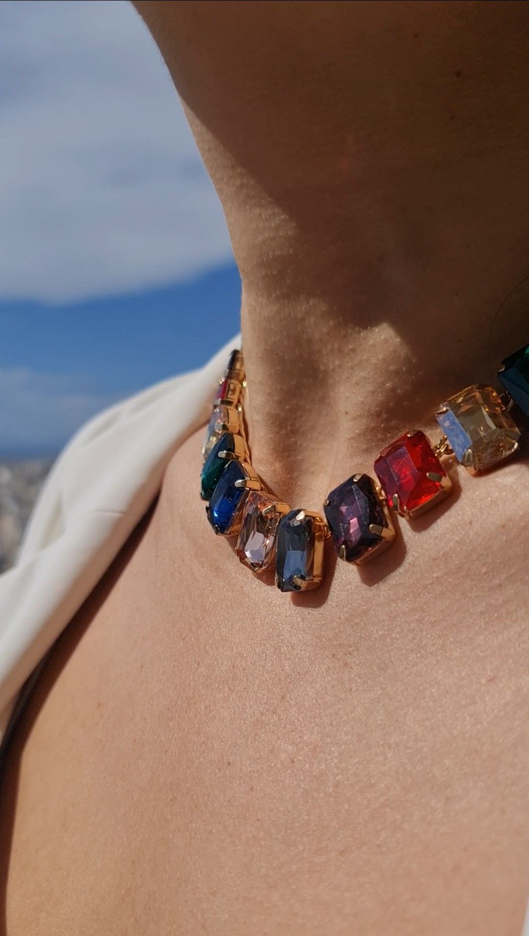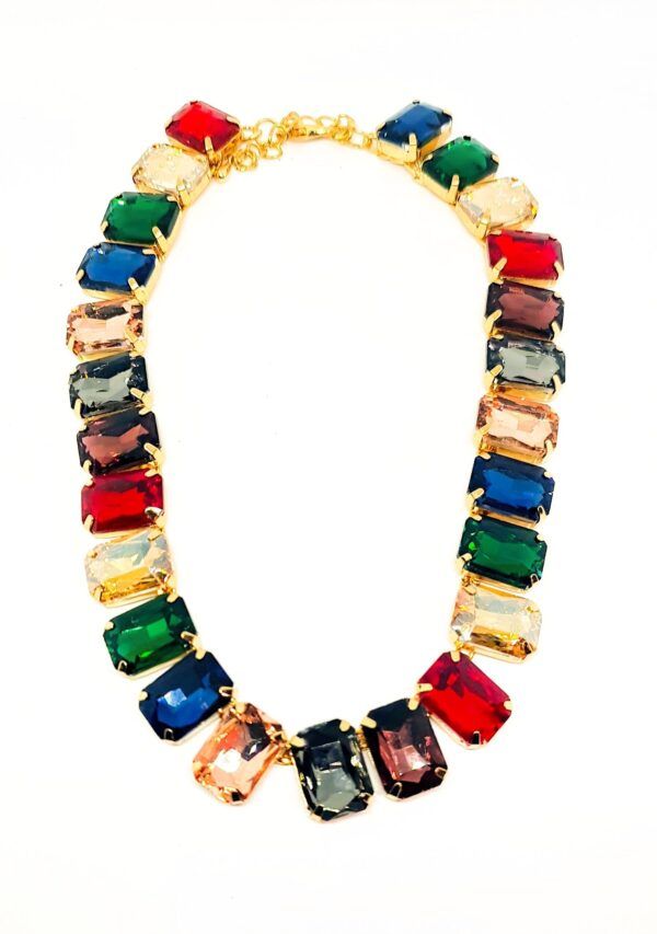 ΚΟΛΙΕ ΧΡΥΣΟ ΜΕ ΠΟΛΥΧΡΩΜΟΥΣ ΚΡΥΣΤΑΛΛΟΥΣ 40cm. Ένα κόσμημα που μπορεί να φορεθεί μόνο του ή σε layering για πιο ολοκληρωμένο και σύγχρονο styling.